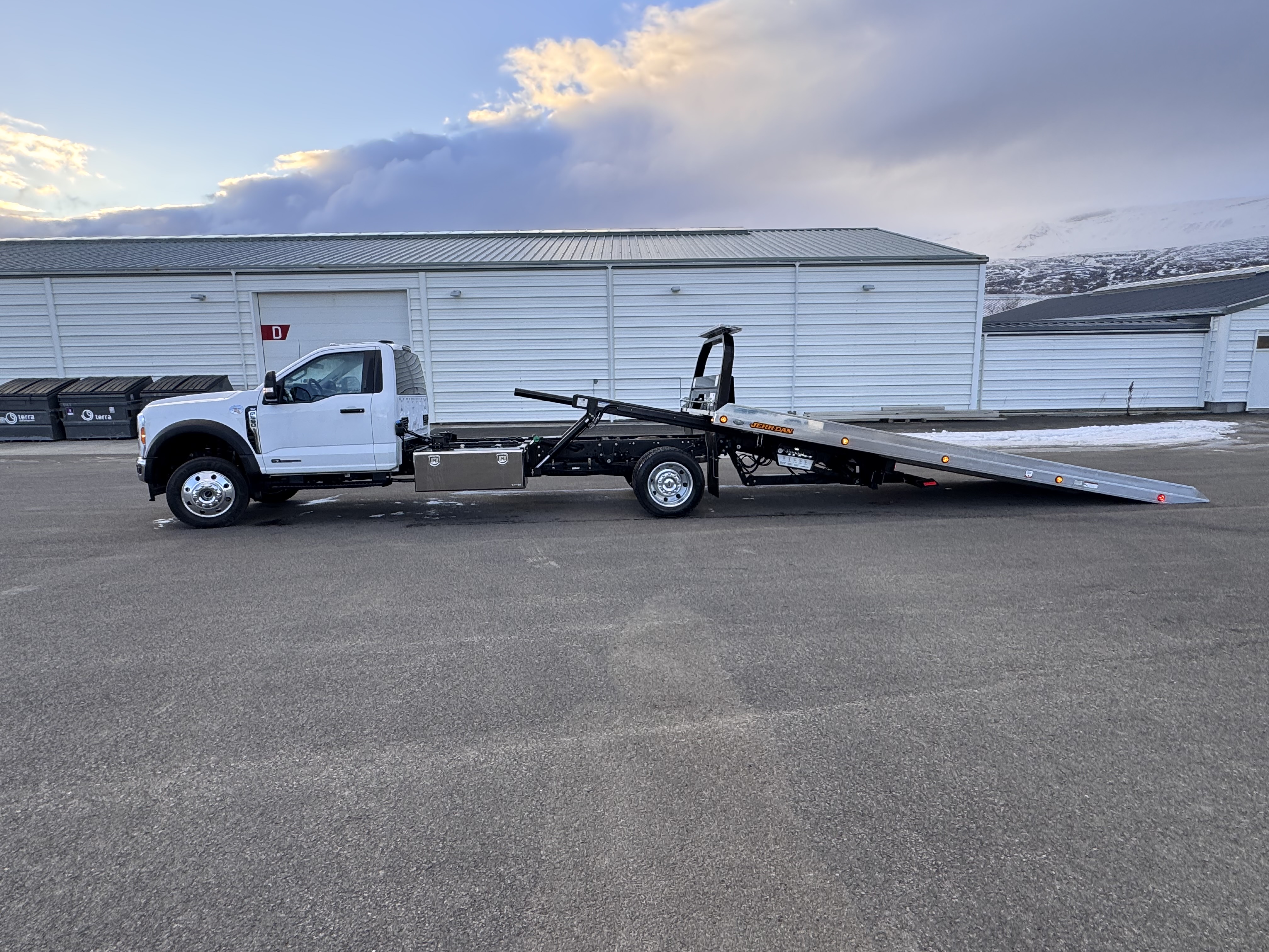 Úr varð að fara að finna aldrifs bíl í þjónustu okkar, oft verið þörf þó svo þessi vetur hafi ekki gefið mikið tilefni til þess, það má reikna með að það komi þeir tímar aftur og því fjárfestum við í Ford F-550 bílaflutningabíl sem á eftir að spila stórt hlutverk í daglegri notkun, er ætlunin að hvíla Benz eitthvað en hann hefur þjónustað afar vel við öll okkar verkefni. Þessi bíll verður settur í litina okkar til að vera sjáanlegri í umferðinni